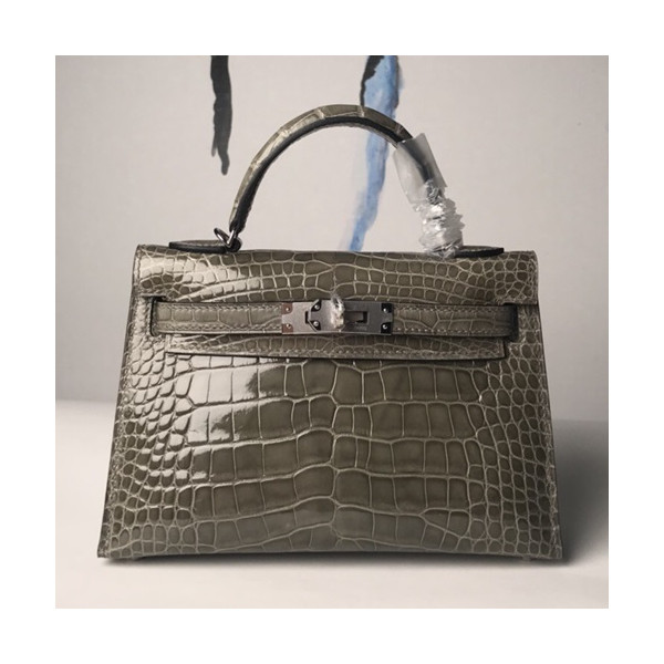 ✨Hermes Mini Kelly Crocodile Leather Tote Shoulder Bag , - 에르메스 미니 켈리 크로커다일 레더 여성용 토트 숄더백 HERB0277,그레이 요약정보 및 구매