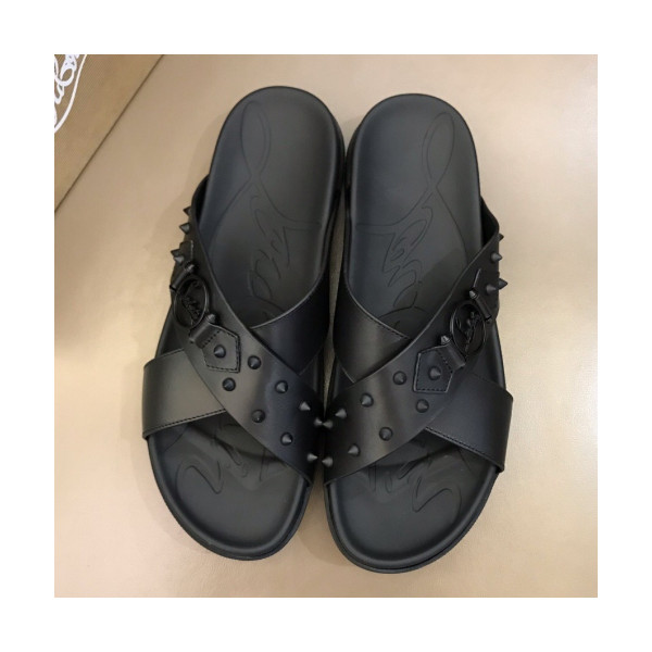 ✨Christian Louboutin 2019 Mens Logo Stud Leather Slipper - 크리스챤 루부탱 남성 로고 스터드 레더 슬리퍼 Btin0055x.Size(240 - 275).블랙 요약정보 및 구매