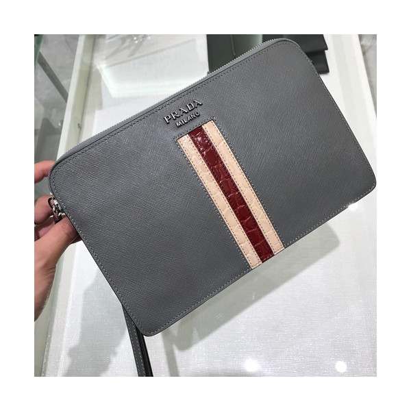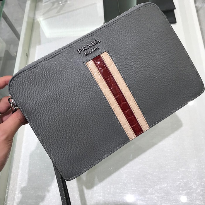 ✨Prada Mens 2019 Clutch Bag ,27CM - 프라다 2019 남성용 클러치백 2VF056-26,27CM,그레이+베이지 요약정보 및 구매