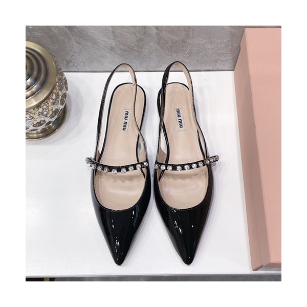 ✨Miumiu 2019 Ladies Leather Slingback- 미우미우 2019 여성용 레더 슬링백 MIUS0027.Size(225 - 245).블랙 요약정보 및 구매