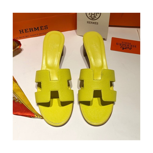 ✨Hermes 2019 Ladies Oasis Leather Middle Heel Slipper - 에르메스 2019 여성용 오아시스 레더 미들힐 슬리퍼 HERS0089,Size(225 - 250).옐로우 요약정보 및 구매