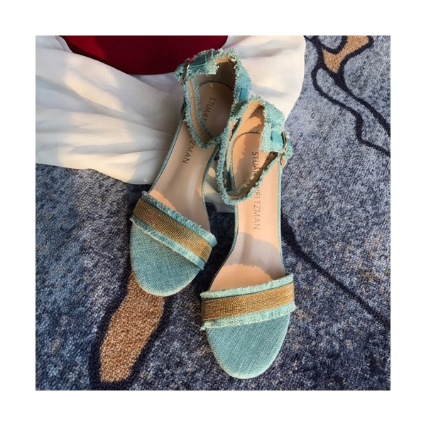 ✨Stuart Weitzman 2019 Ladies Denim & Leather Middle Heel Sandal - 슈트어트 와이츠먼 2019 여성용 데님&레더 미들힐 샌들 STUS0011.Size(220 - 245).스카이블루 요약정보 및 구매