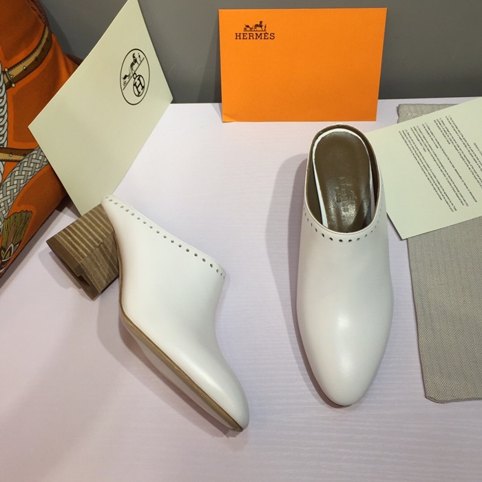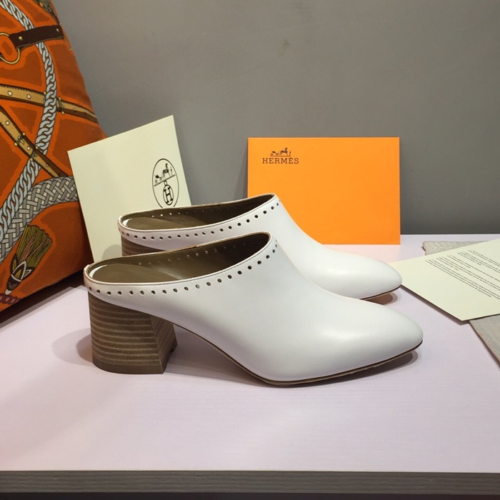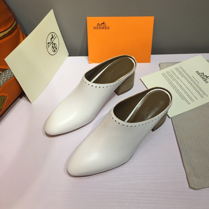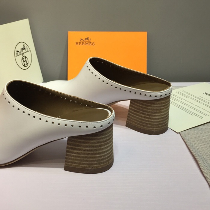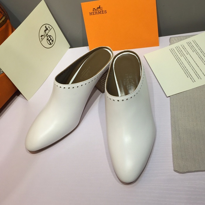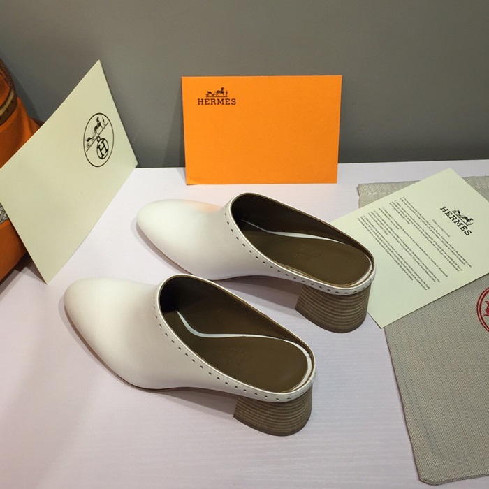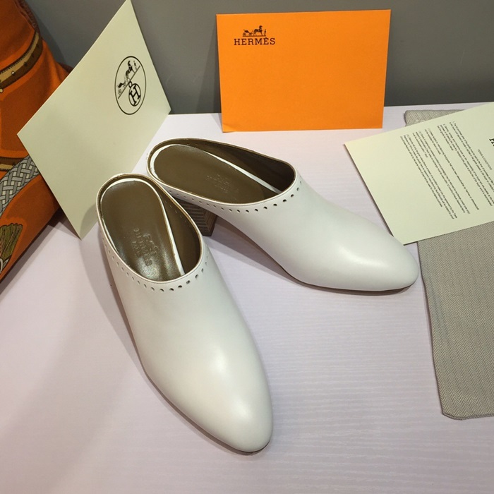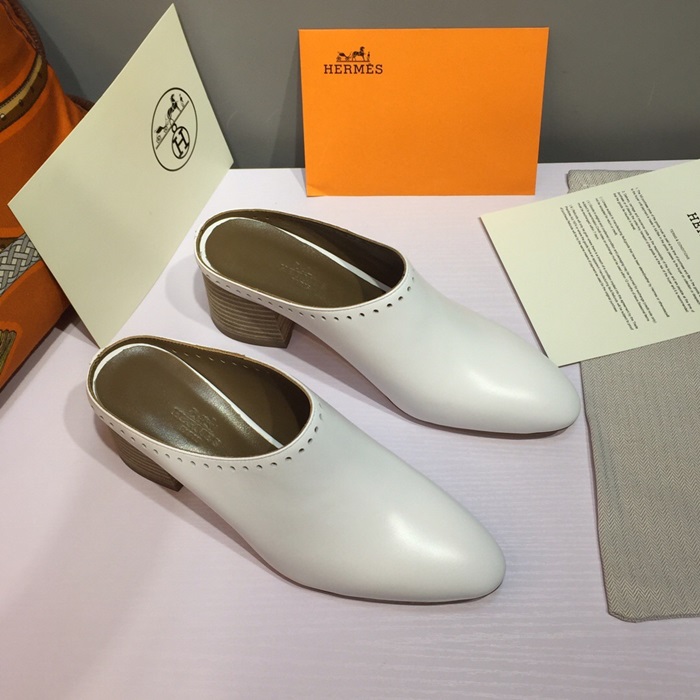 ✨Hermes 2019 Ladies Leather Middle Heel Bloafer- 에르메스 2019 여성용 레더 미들힐 블로퍼 HERS0115,Size(225 - 250).화이트 요약정보 및 구매