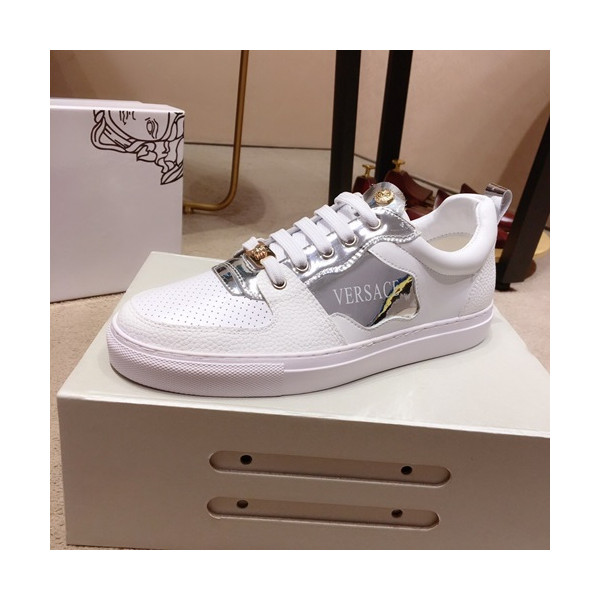 ✨Versace 2019 Mens Leather Sneakers - 베르사체 2019 남성용 레더 스니커즈 VERS0196,Size (240 - 270).화이트 요약정보 및 구매