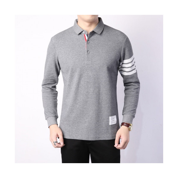 ✨Thom Browne 2019 Mens Strap Polo Tshirt - 톰브라운 2019 남성 스트랩 폴로 긴팔티 Thom0413x.Size(m - 3xl).그레이 요약정보 및 구매