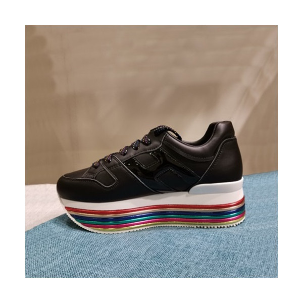 ✨Hogan 2019 Ladies Leather Platform Sneakers - 호간 2019 여성용 레더 플랫폼 스니커즈 HOGS0017.Size(225 - 245).블랙 요약정보 및 구매