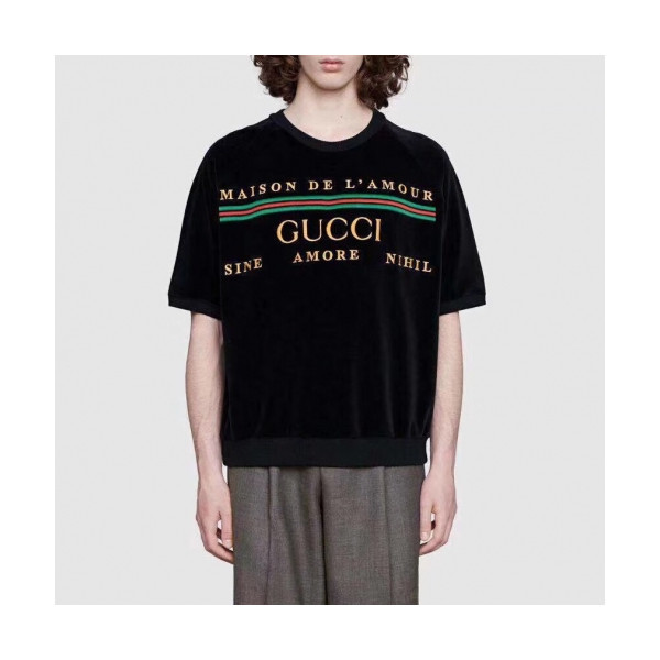 ✨[매장판]Gucci 2020 Mm/Wm Logo Velvet Short Sleeved Tshirts - 구찌 2020 남자 로고 벨벳 반팔티 Guc02000x.Size(m - 3xl).블랙 요약정보 및 구매