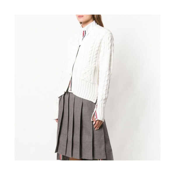 ✨Thom Browne 2020 Womens Classic V-neck Wool Cardigan - 톰브라운 2020 여성 클래식 브이넥 울 가디건 Thom0576x.Size(s - l).화이트 요약정보 및 구매