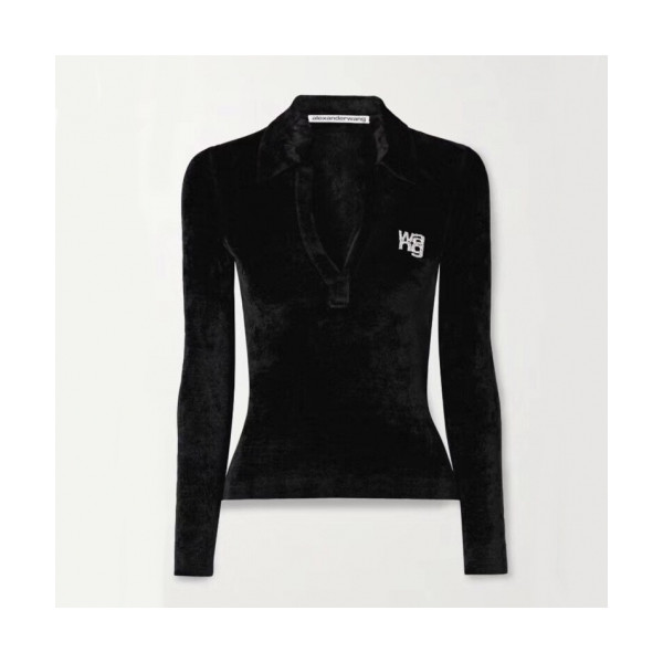 ✨[매장판]Alexsander Wang 2020 Womens Logo Velvet Polo Tshirts - 알렉산더왕 2020 여성 로고 벨벳 폴로 긴팔티 Alw0088x.Size(s - l).블랙 요약정보 및 구매