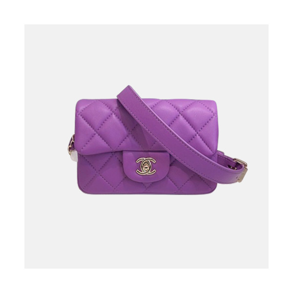 ✨Chanel 2020 Women Leather Hip Sack Belt Bag ,18CM - 샤넬 2020 여성용 레더 힙색 벨트백,CHAB1554,18CM,퍼플 요약정보 및 구매
