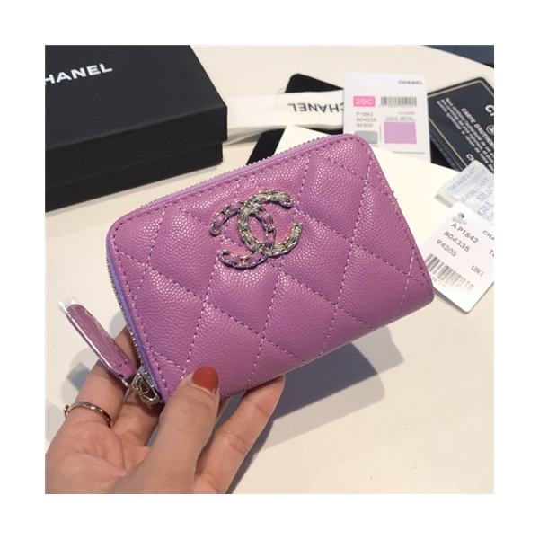 ✨Chanel 2021 Women's Leather Coin purse/Card purse,11.5cm - 샤넬 2021 여성용 레더 코인퍼스/카드퍼스,11.5cm,CHAW0106,퍼플 요약정보 및 구매