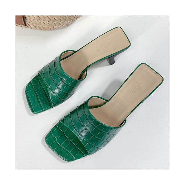 ✨By Far 2021 Women's Leather High Heel Slipper,BYFS0032 - 바이파 2021 여성용 레더 하이힐 슬리퍼,Size(225-250),그린 요약정보 및 구매