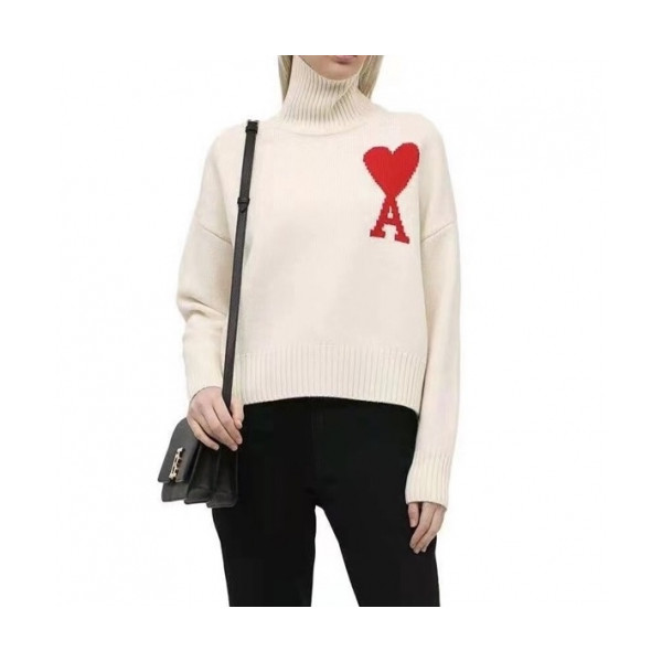 ✨Ami Mm/Wm Logo Casual Turtle-neck Sweaters Ivory - 아미 2021 남/녀 로고 캐쥬얼 터틀넥 스웨터 Ami0191x Size(s - l) 아이보리 요약정보 및 구매