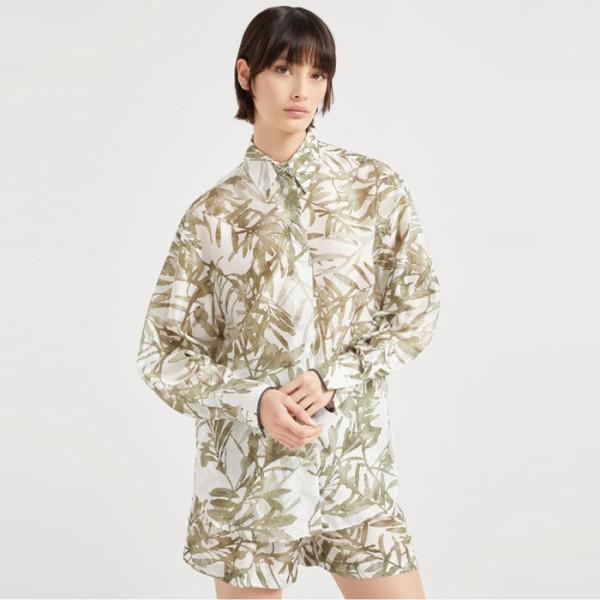 ✨브루넬로쿠치넬리 여성 실크 허바리움 프린트 폰지 셔츠 - Brunello Cucinelli Womens Silk Herbarium Print Pongee Shirt With Shiny Cuffs - brc6910x 요약정보 및 구매